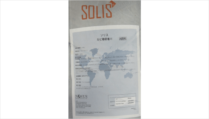 - SOLIS features high ion exchange capability and high swelling property, exhibiting high mycotoxin absorption capability even if the amount of the product is small.